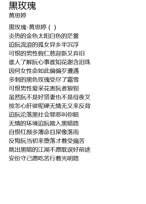| [00:00.00] | 黒玫瑰-黄思婷() |