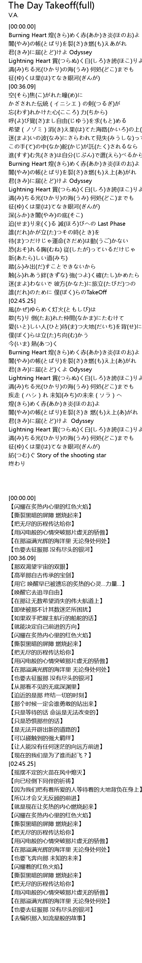 | [02:38.07] | 誰(だれ)のために 僕(ぼく)らのTakeOff |