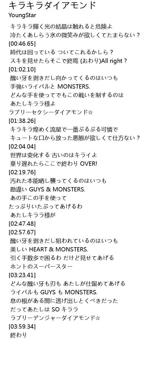 | [03:52.01] | ラブリーデンジャーダイアモンド☆ |