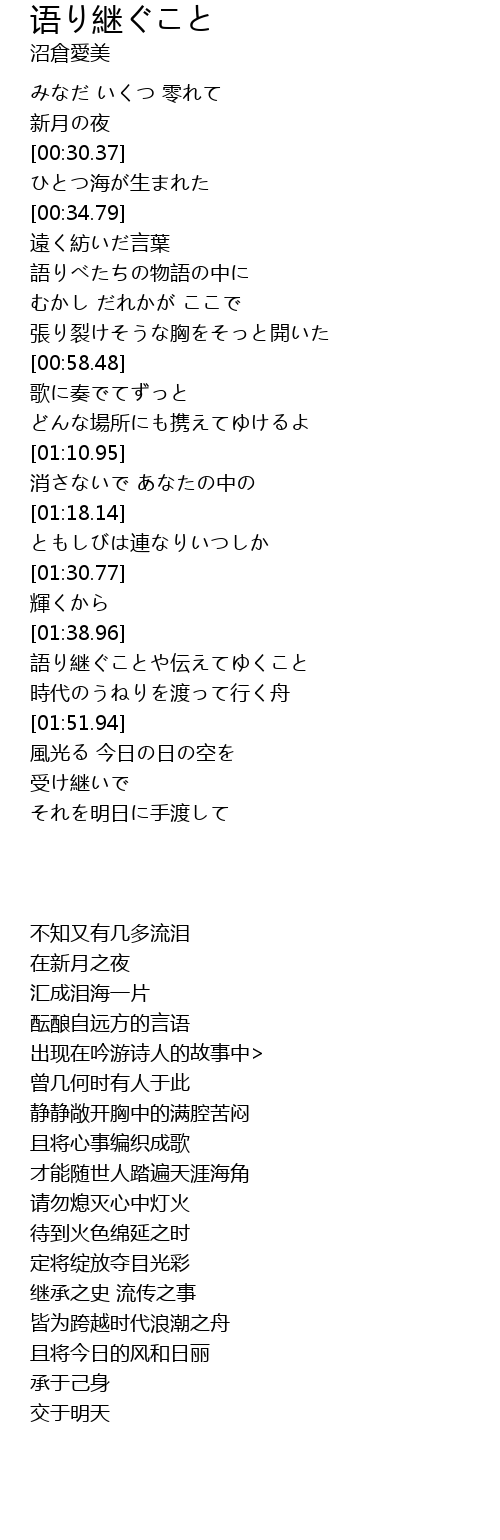 | [01:40.43] | 語り継ぐことや伝えてゆくこと |