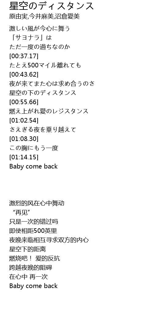 | [00:50.68] | 星空の下のディスタンス |