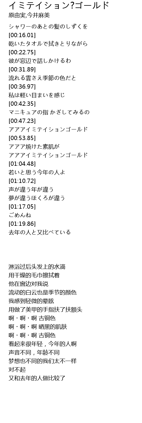 | [00:43.54] | マニキュアの指 かざしてみるの |