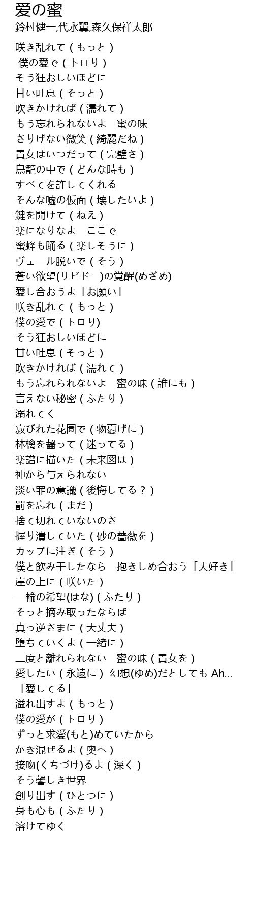 | [01:32] | もう忘れられないよ 蜜の味(誰にも) |