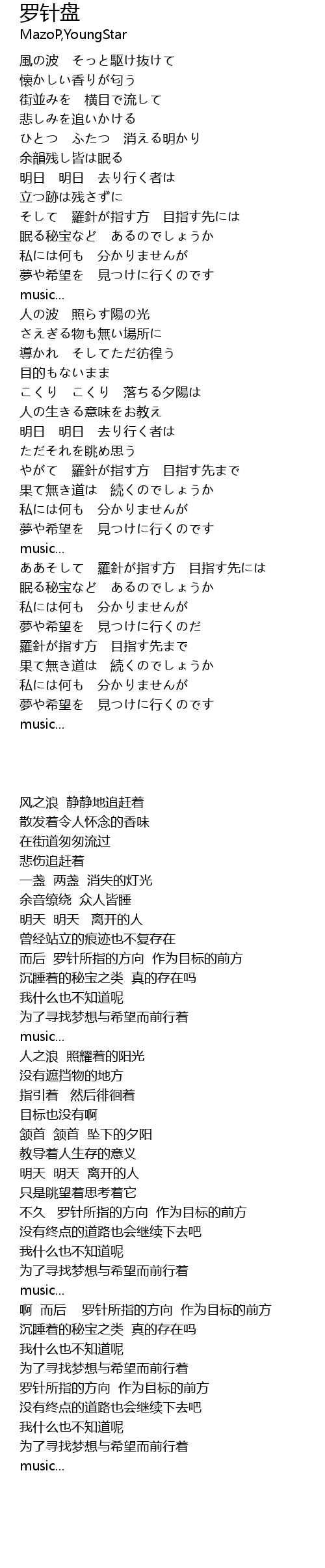 | [02:36.95] | luó zhēn zhǐ fāng mù zhǐ xiān |