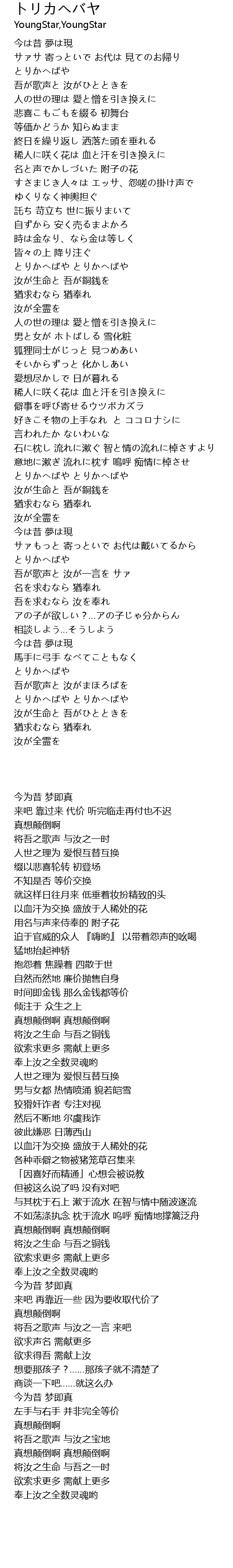 | [00:40.90] | すさまじき人々は エッサ、怨嗟の掛け声で |