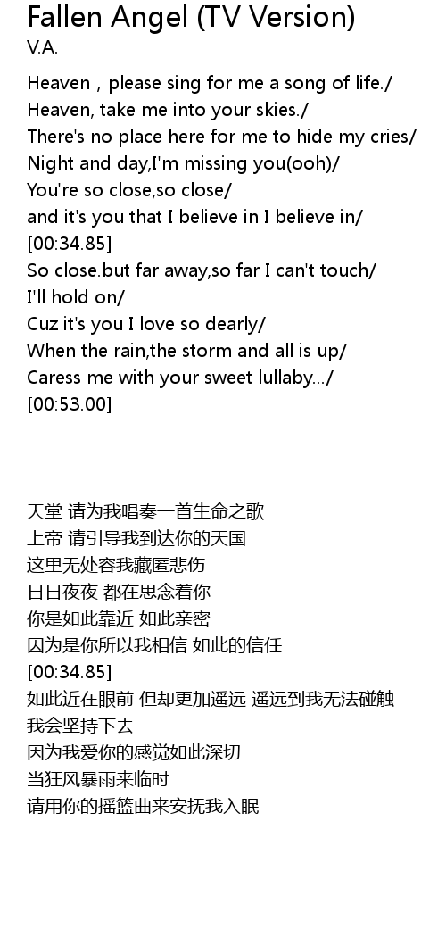 | Song | Fallen Angel (TV Version) |