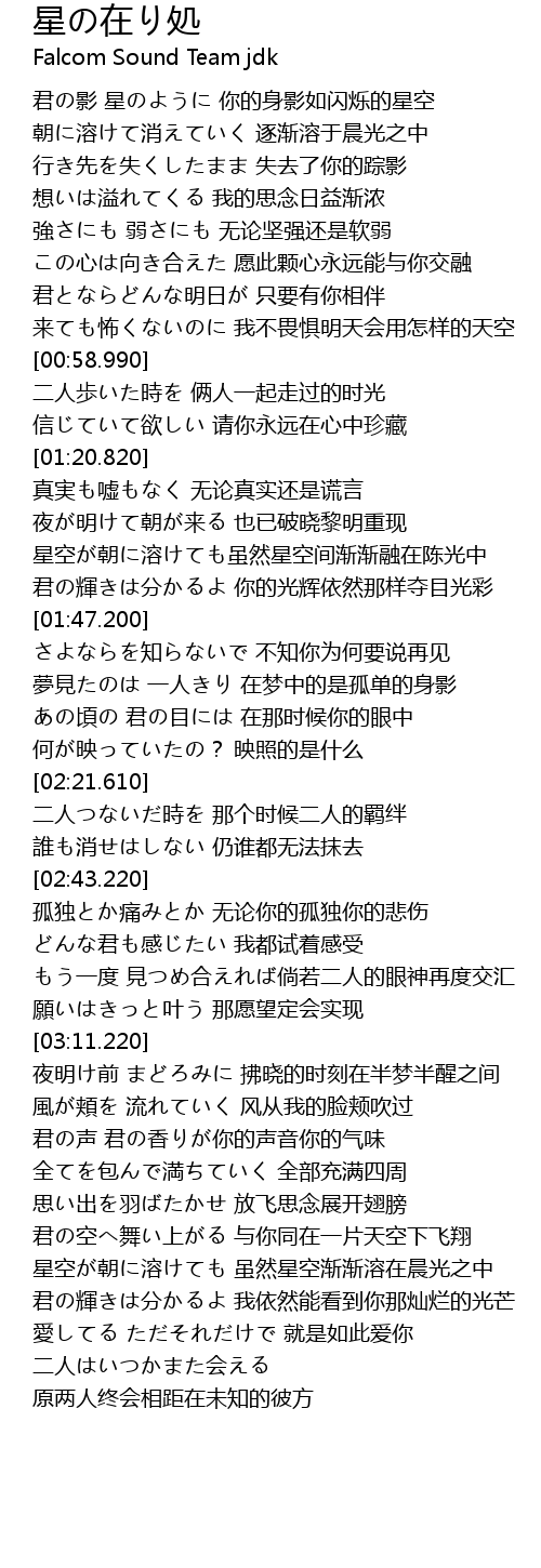| [01:35.370] | 星空が朝に溶けても虽然星空间渐渐融在陈光中 |
