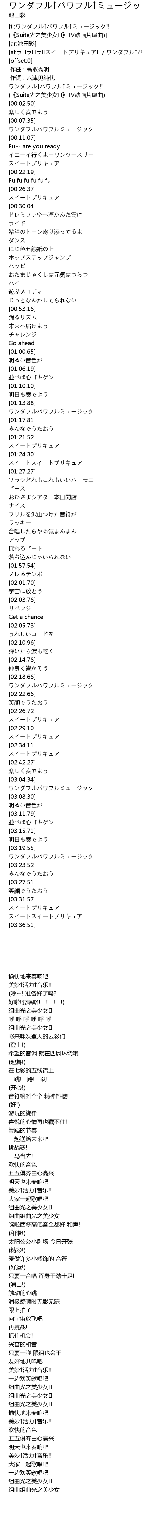 | [ti:ワンダフル↑パワフル↑ミュージック!! (《Suite光之美少女♪》TV动画片尾曲)] | |