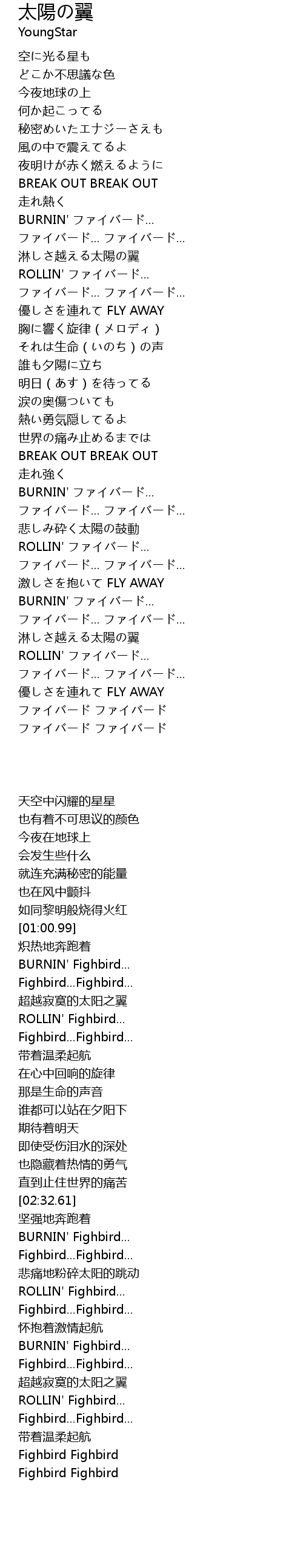 | [02:32.61] | BREAK OUT BREAK OUT |