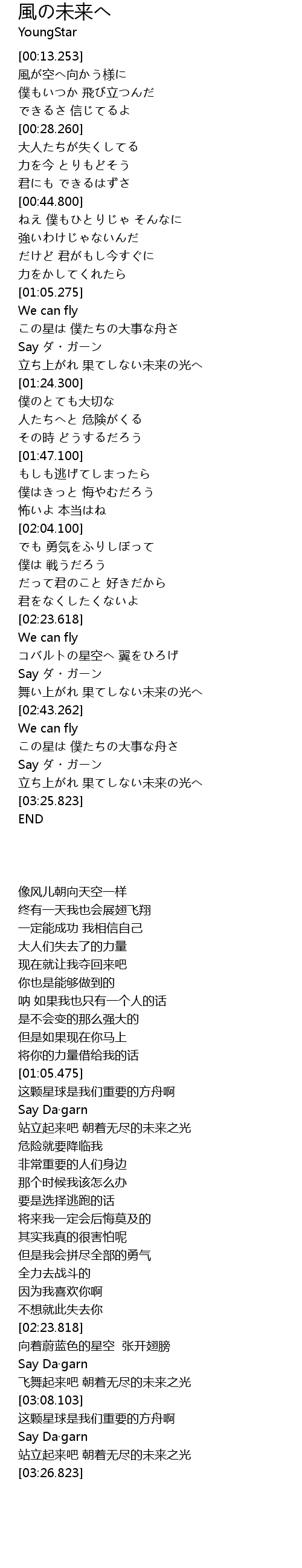 | [03:17.823] | 立ち上がれ 果てしない未来の光へ |