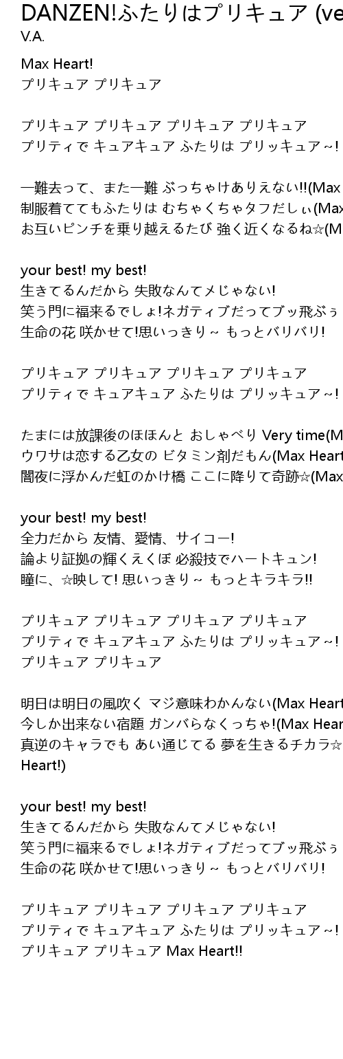 | Song | DANZEN!ふたりはプリキュア (ver.MaxHeart) |