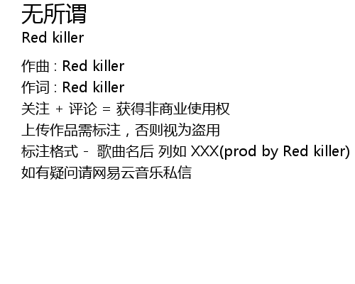 | 标注格式 - 歌曲名后 列如 XXX(prod by Red killer) | |