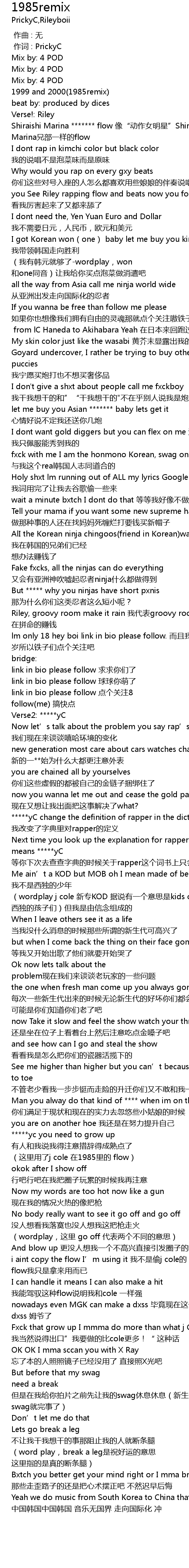 | [00:59.63] | fxck with me I am the honmono Korean, swag on me. 与我这个real韩国人志同道合的 |