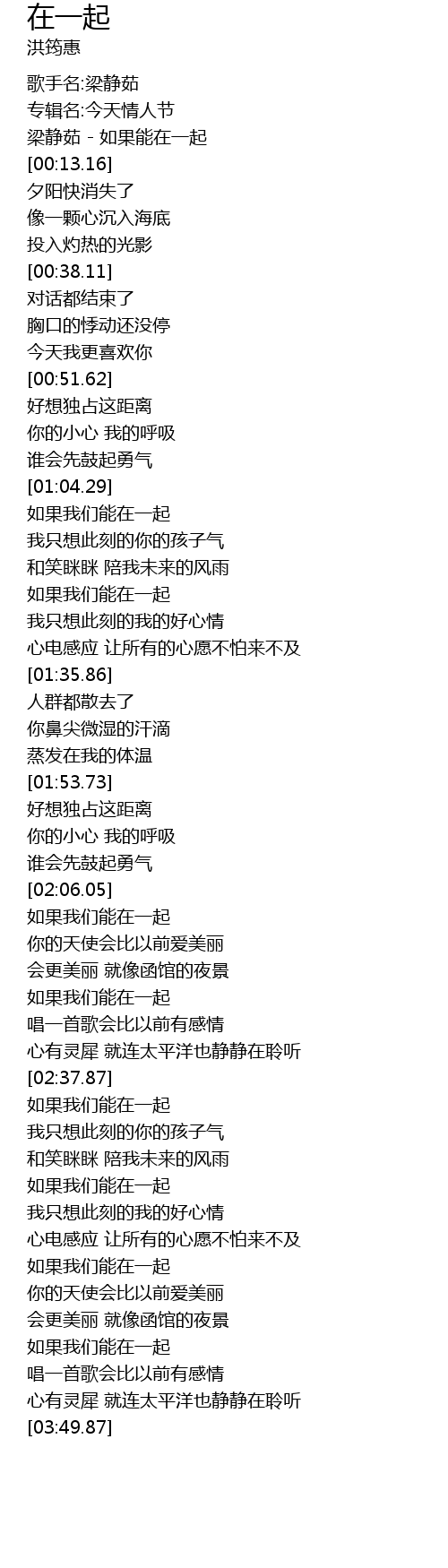 [00:01.00] 梁静茹 - 如果能在一起