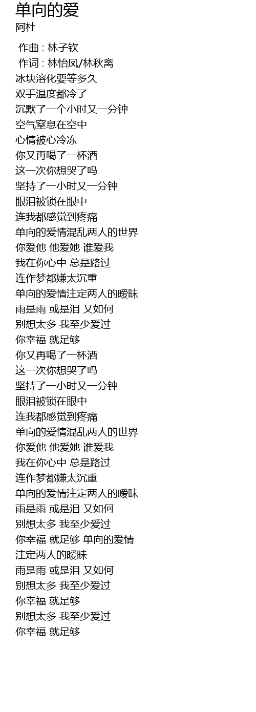 | [03:10.200] | 你幸福 就足够 单向的爱情 |