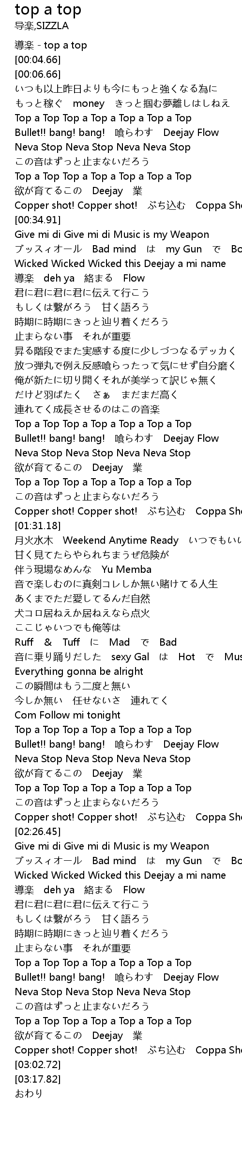 | [02:55.22] | Top a Top Top a Top a Top a Top a Top |