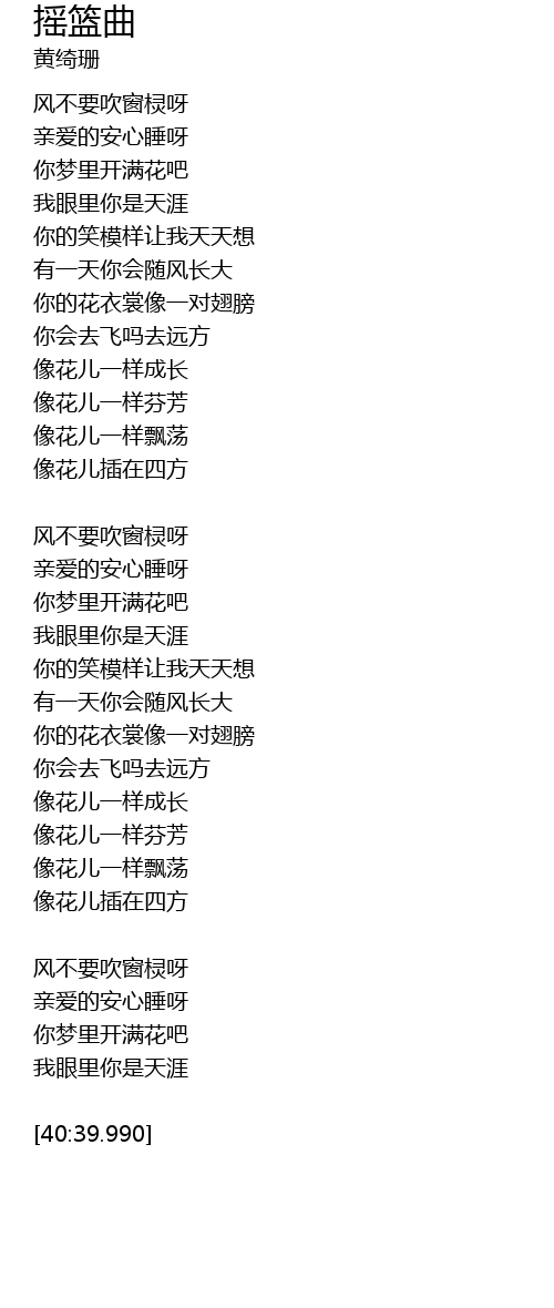 | [02:22.790] | 亲爱的安心睡呀 |