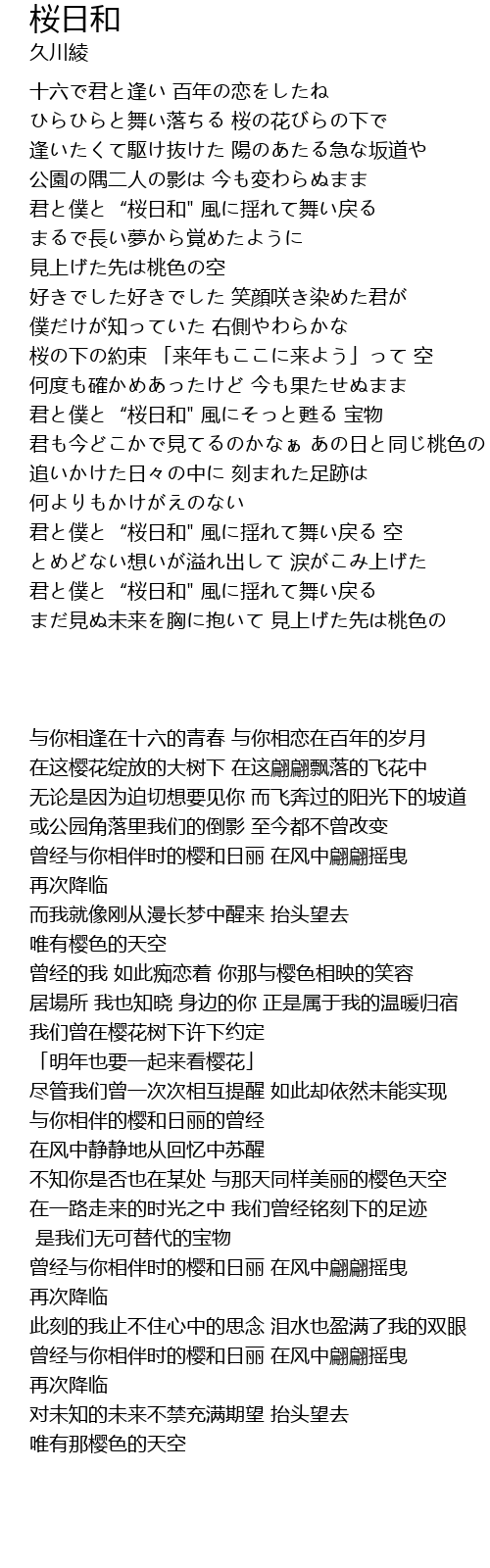 | [02:19.01] | 君と僕と“桜日和" 風にそっと甦る 宝物 |