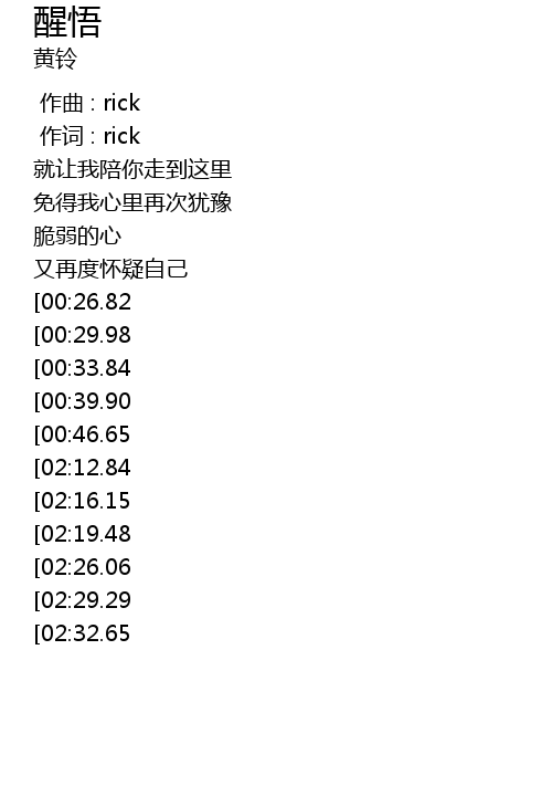 | [02:59.21][02:32.65][01:13.09] | 我的梦已醒 酒已醒 人亦醒 |