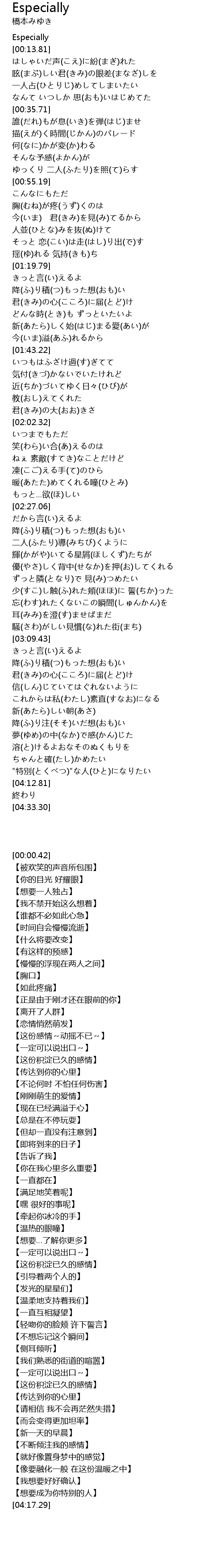| [04:07.66] | "特別(とくべつ)"な人(ひと)になりたい |
