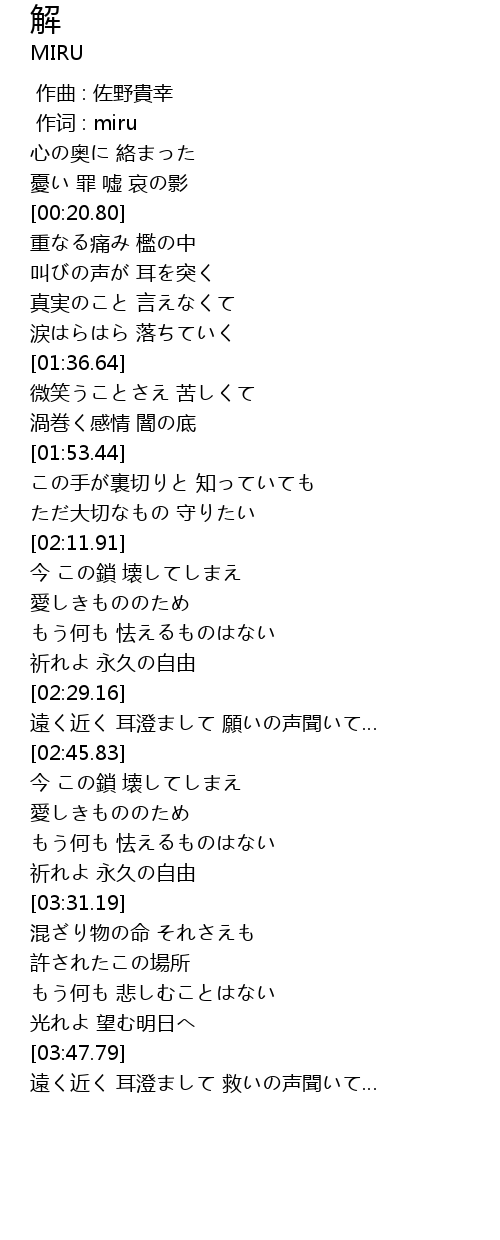 | [03:48.49] | 遠く近く 耳澄まして 救いの声聞いて… |