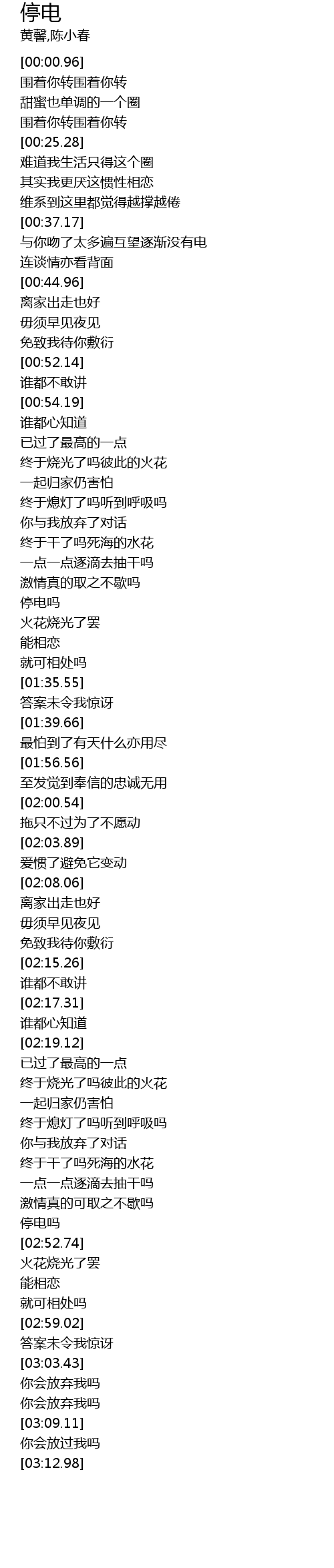 | [00:59.97] | 终于烧光了吗彼此的火花 |