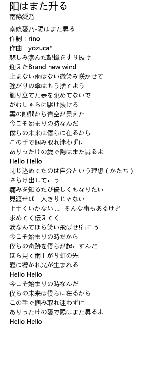 | [00:00.00] | 南條愛乃-陽はまた昇る |