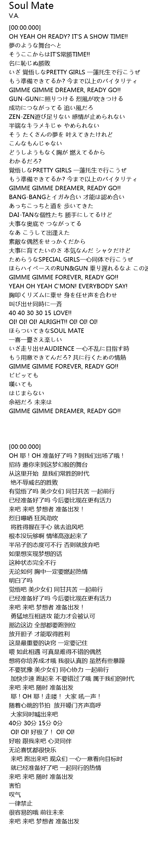| [00:02.870] | OH YEAH OH READY? IT' S A SHOW TIME!! |