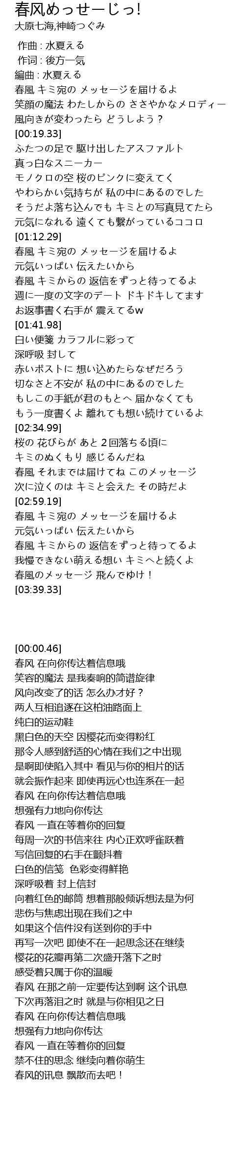 | [00:00.67] | 春風 キミ宛の メッセージを届けるよ |