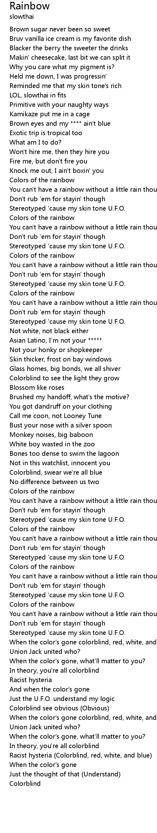 | [01:06.51] | You can't have a rainbow without a little rain though |
