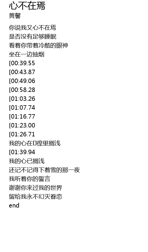 | [00:20.27] | 你说我又心不在焉 |