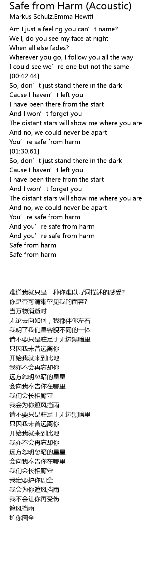 | [02:38.42] | Safe from harm |