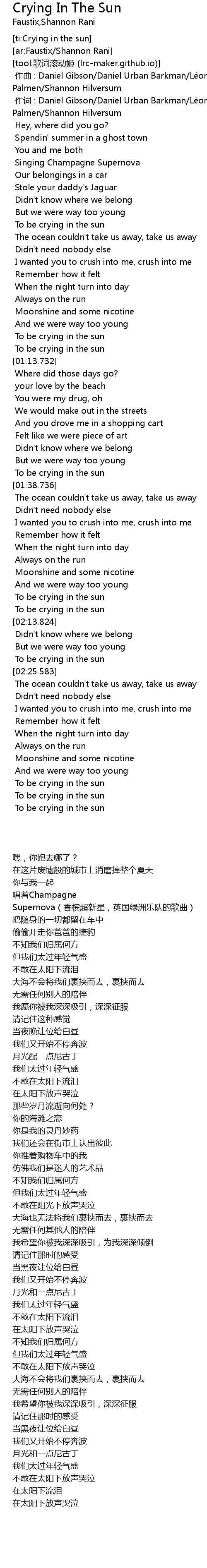 | [01:36.847] | To be crying in the sun |