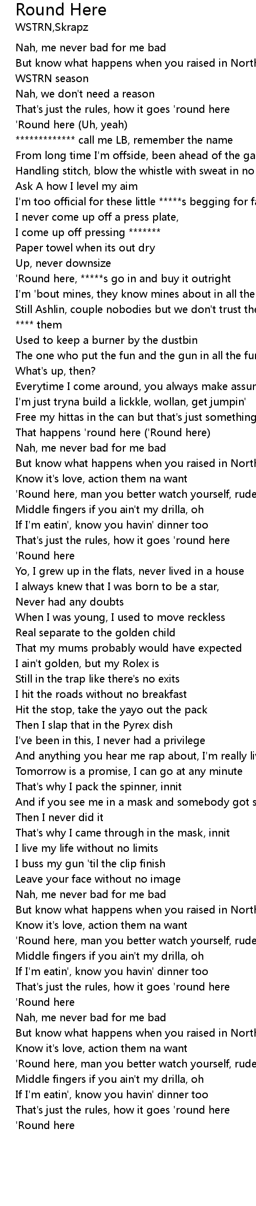 | [00:19.14] | 'Round here (Uh, yeah) |