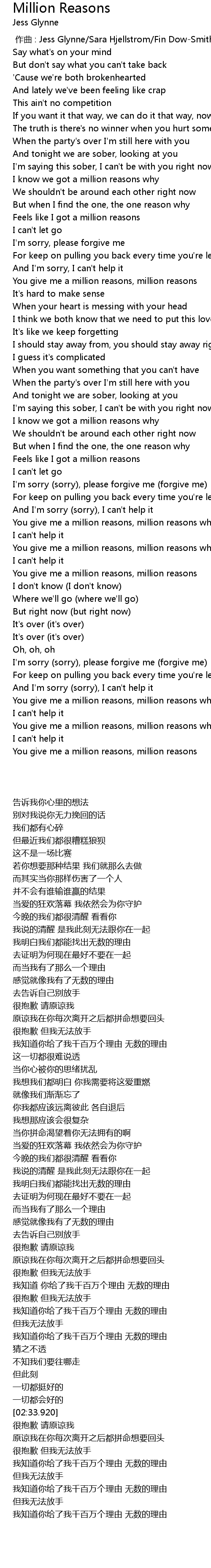 | [02:21.430] | You give me a million reasons, million reasons |