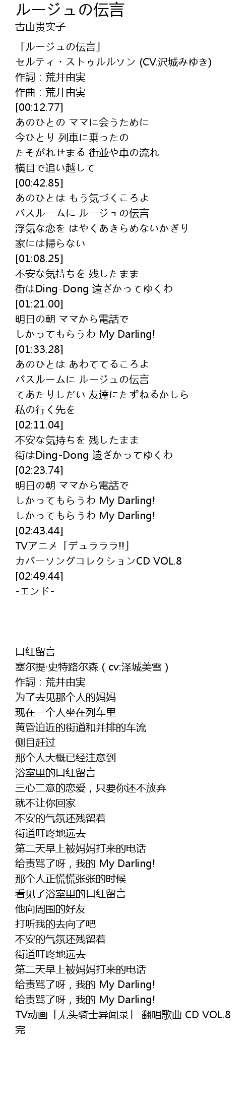 | [02:45.44] | TVアニメ「デュラララ!!」 カバーソングコレクションCD VOL.8 |