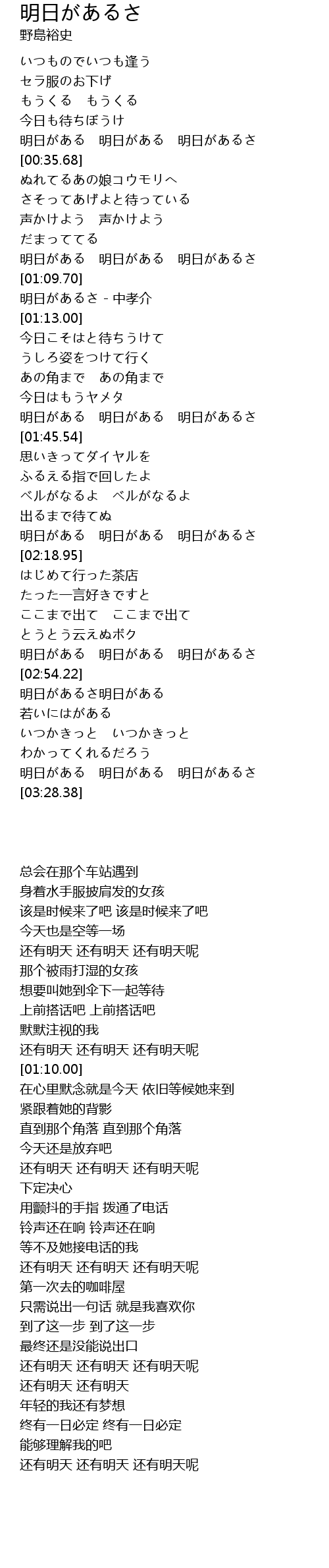 | [00:59.01] | 明日がある 明日がある 明日があるさ |