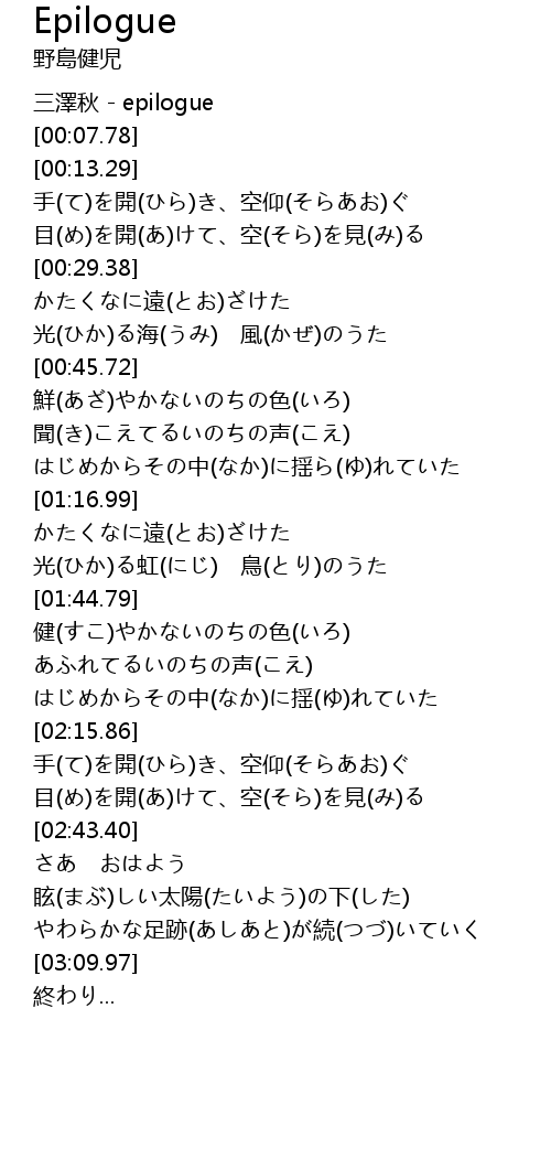 | [01:54.57] | あふれてるいのちの声(こえ) |