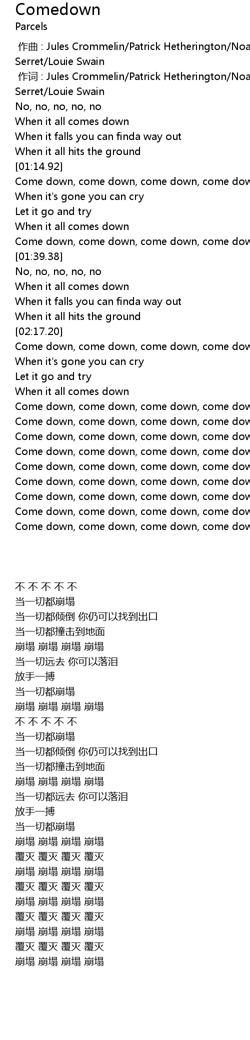 | [02:17.74] | Come down, come down, come down, come down |