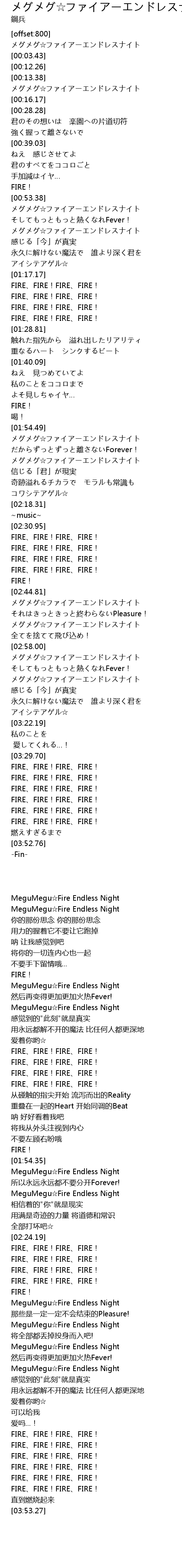 | [02:00.44] | メグメグ☆ファイアーエンドレスナイト |