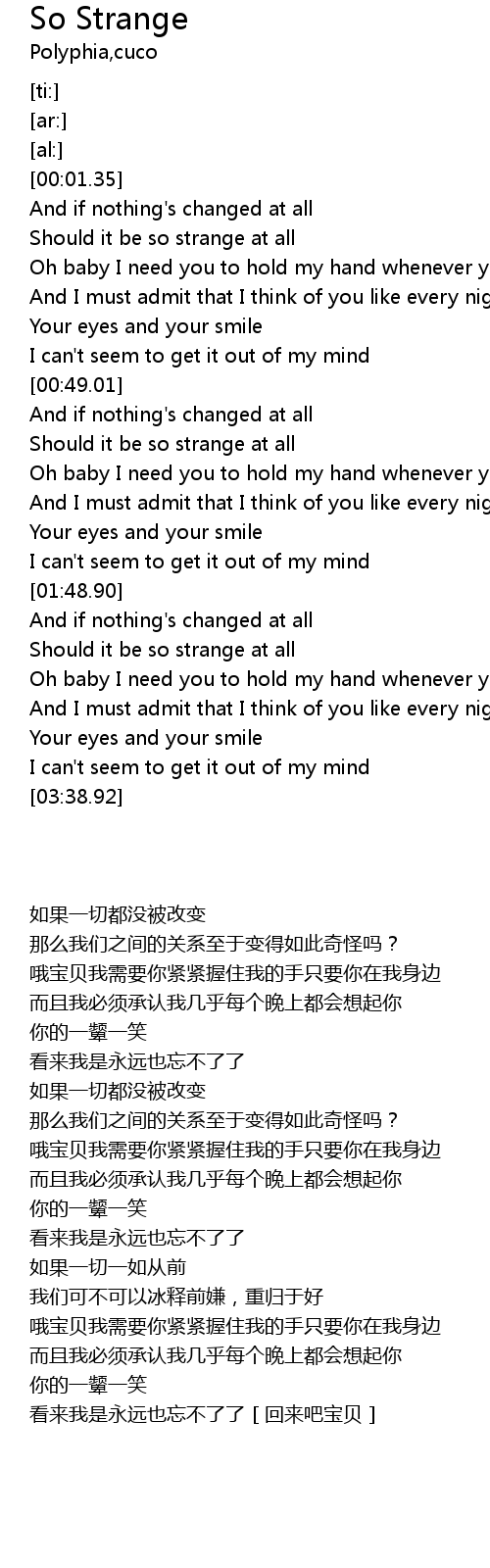 | [01:33.97] | Oh baby I need you to hold my hand whenever you're here |