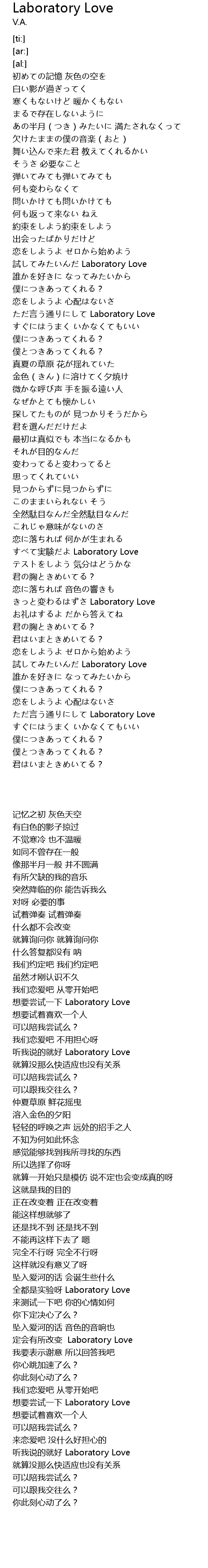 | [03:00.38] | きっと変わるはずさ Laboratory Love |