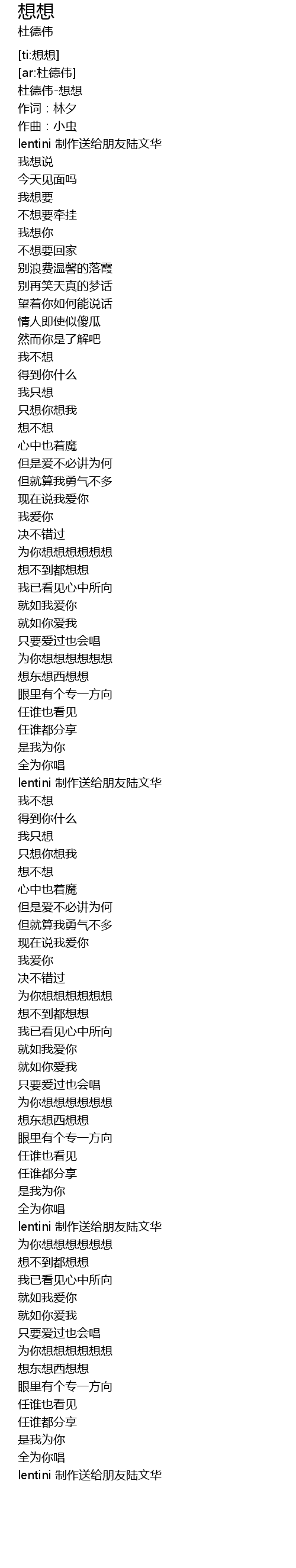 | [00:01.02] | 杜德伟-想想 |