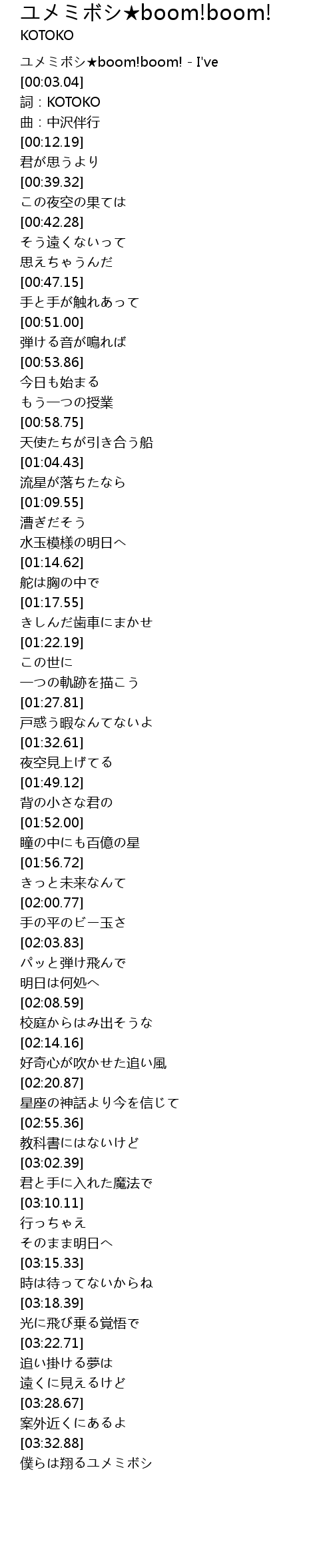 | [00:00.55] | ユメミボシ★boom!boom! - I've |