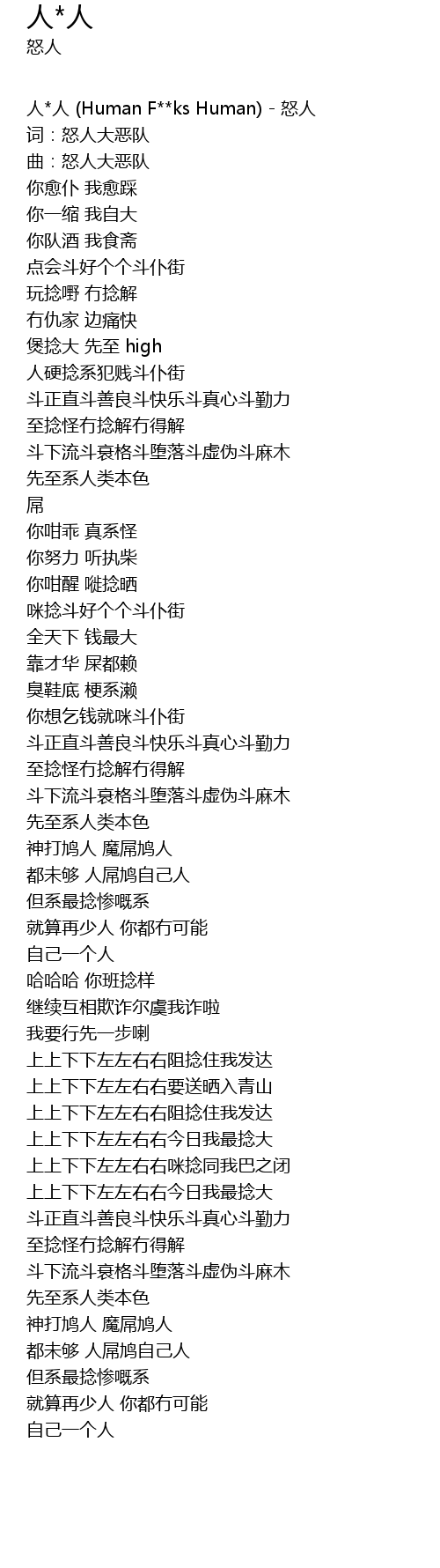 | 人*人 (Human F**ks Human) - 怒人 | |