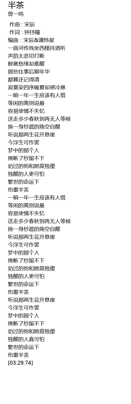 | [00:48.33] | 一晌一年一生应该有人惜 |