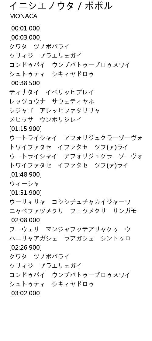 | [02:45.000] | コンドゥバイ ウンブバトゥーブロゥヌワイ |