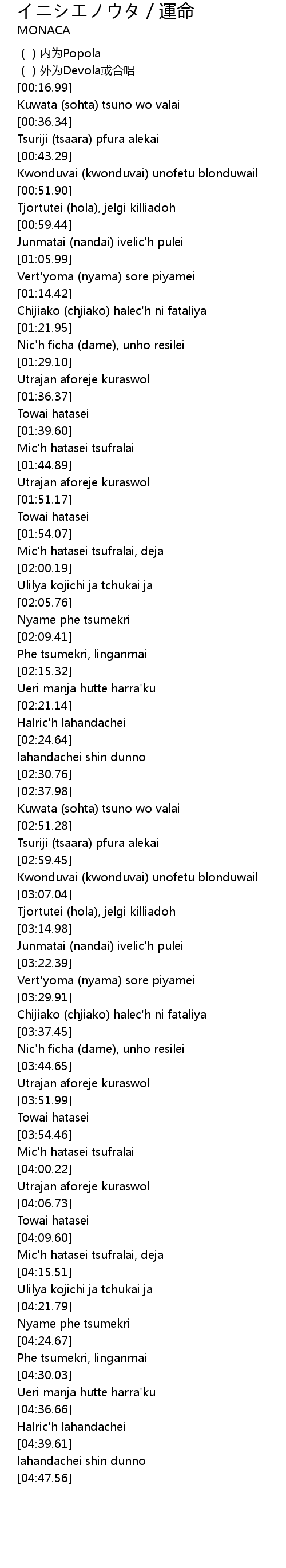 | [02:52.84] | Tsuriji (tsaara) pfura alekai |