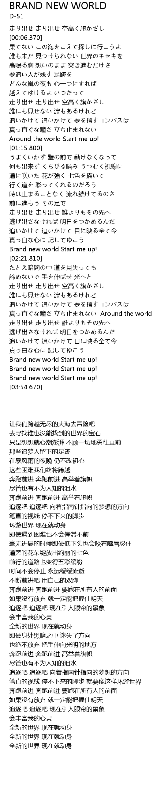 | [03:50.200] | Brand new world Start me up! |
