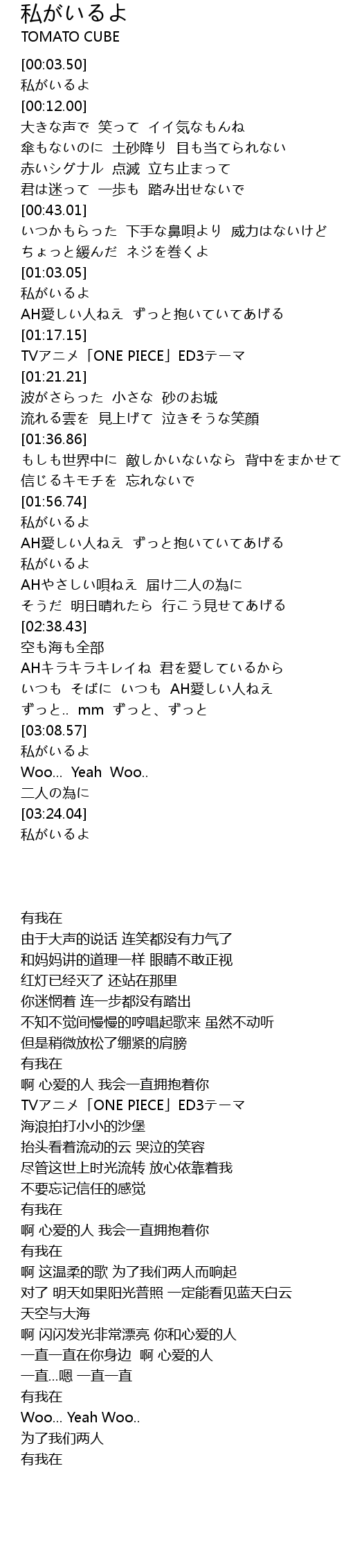 | [01:03.69] | 私がいるよ |